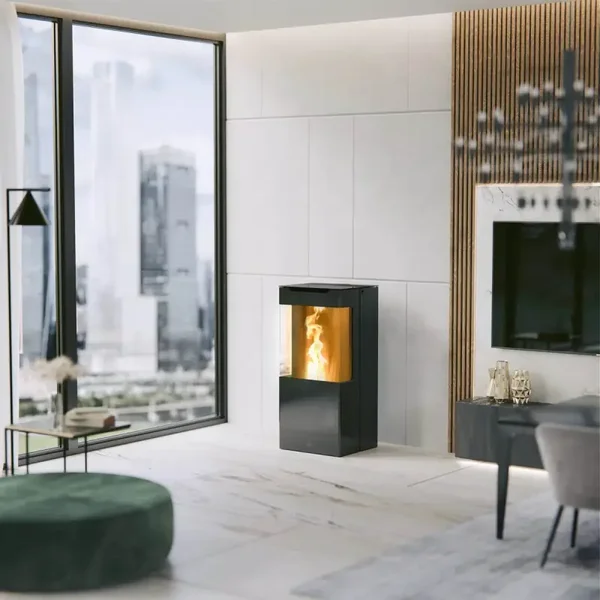 4-sterren pelletkachel, alleen verkrijgbaar in het zwart.
